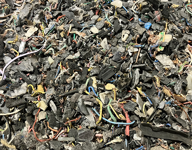 シュレッダーの集塵機で吸引されたASRは、計量後重機でホッパーへ投入され次工程へ進みます。